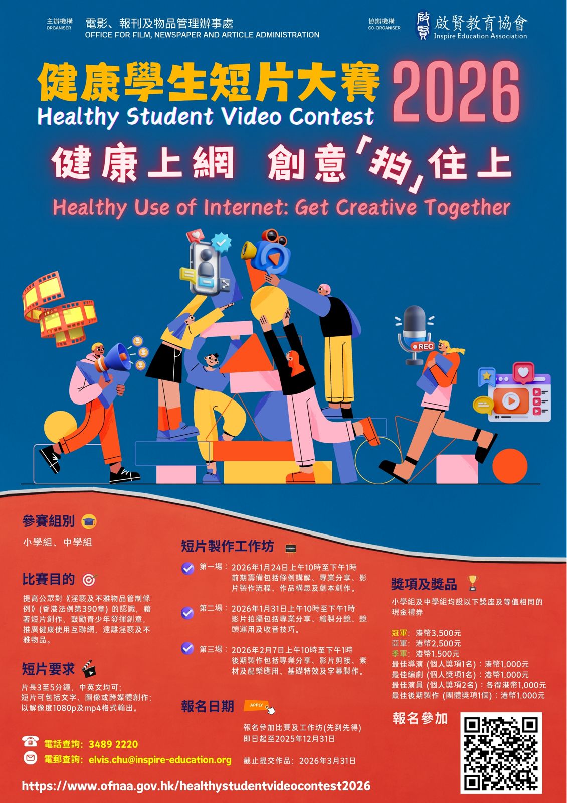 • 電影、報刊及物品管理辦事處有權將參賽者提交的作品用作非牟利之用途,並有權修改、翻譯、改編、使用、複製及派發作品全部或部分內容而毋須事前取得參賽者的同意。